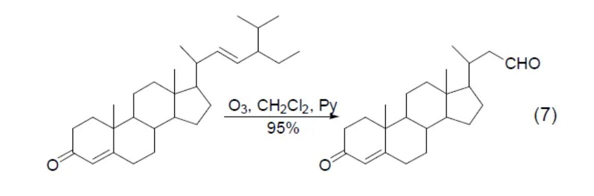 相對于其它烯烴的氧化斷裂試劑而言,臭氧是比較好的一種。其它試劑如四氧化鋨、高錳酸鉀、高碘酸鈉或羧酸鎘等都價格昂貴、有很高的毒性,并且會造成金屬離子污染,后處理步驟復(fù)雜。